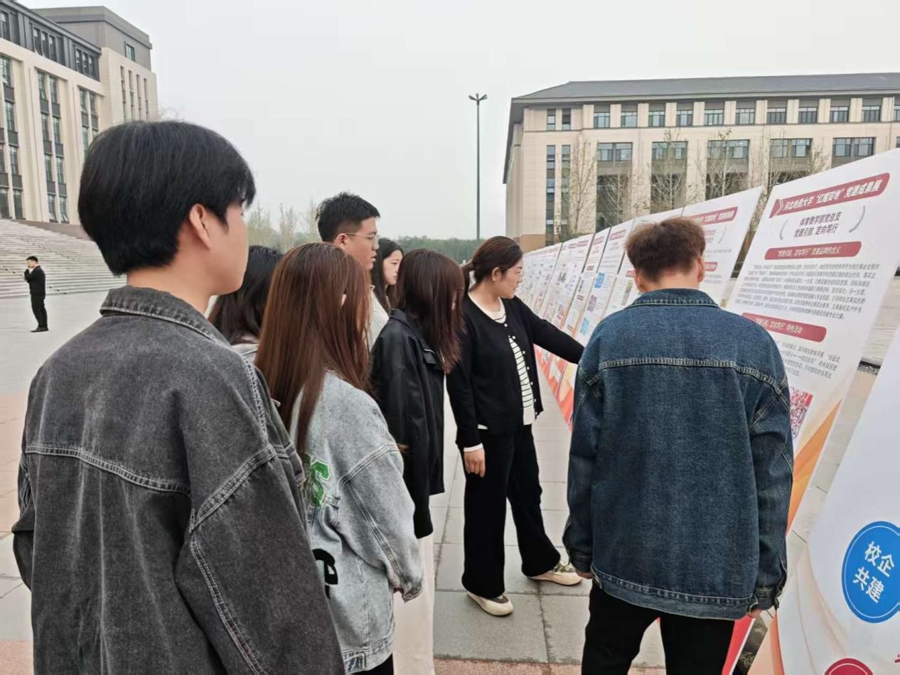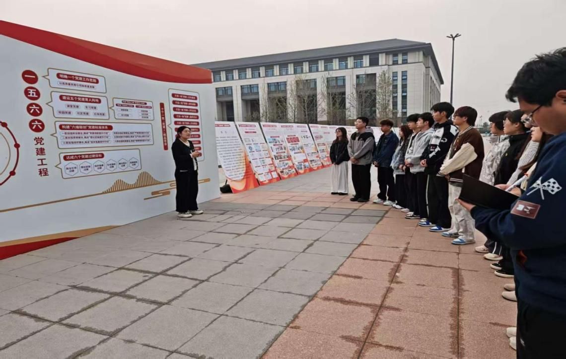 为深入学习贯彻习近平总书记关于红色文化传承的重要论述,扎实推进党员理想信念教育与思想建设工作,2025 年 10 月 16 日下午,水资源与环境学院党委副书记张丽娜、学生党支部书记姜晓雪带队,组织学生党员前往慕水广场,参观 “红耀双地”主题党建成果展板。