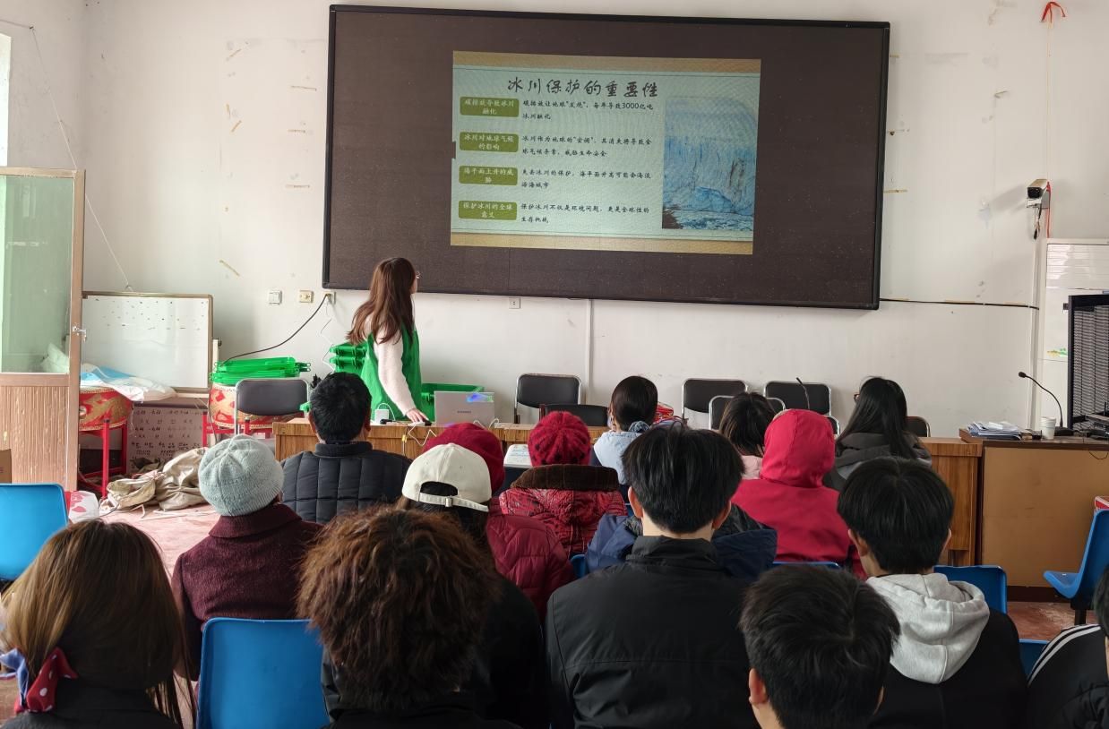 雷锋精神,人人可学;奉献爱心,处处可为。本次志愿服务活动以“绿色发展”为核心抓手,借“世界水日”这一重要契机,将生态文明理念精准传递至乡村一线,让环保意识扎根村民心中。活动现场,志愿者们通过详实的数据、生动的讲解,向村民们展示了全球冰川融化的严峻现状:受碳排放影响,地球“持续升温”,每年有3000亿吨冰川消融。志愿者们重点阐释了冰川作为地球“天然空调”的关键作用,明确指出冰川消融不仅会引发全球气候异常,更会直接威胁人类未来的生存发展,让村民深刻认识到保护水资源、守护冰川的紧迫性。活动现场发出倡议,呼吁每一位村民都行动起来,从自身做起、从点滴做起,减少碳排放,主动参与生态环保实践,切实响应工作方案中“引导青少年及群众踊跃参与水资源保护等生态环保实践”的号召,共同守护我们赖以生存的家园。